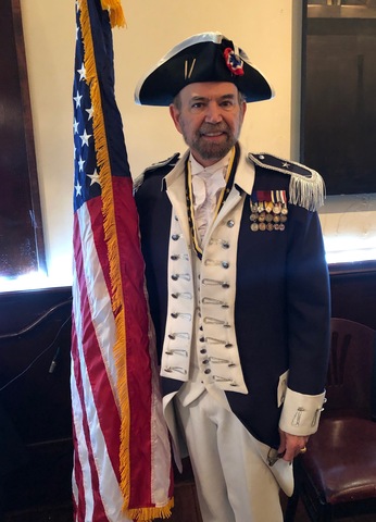 Thomas Jackson, President of the TX SAR in Colonial military uniform. He's speaking about Lexington and Concord, the first shot on April 19, 1775, and the indelible moment we switched from Brtitish subjects to Americans.